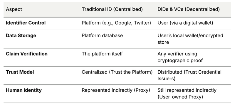 DIDs and VCs don’t create digital identity — they create an open, portable, cryptographically verifiable way to represent and share it. They’re still proxies — but they’re user-owned, privacy-preserving, and platform-neutral proxies.